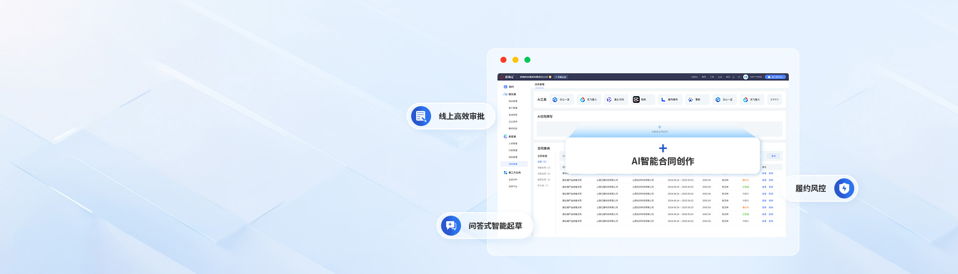 法務(wù)管理系統(tǒng)深度融合AI技術(shù),覆蓋從智能撰寫、在線審批、審查校對(duì)、風(fēng)險(xiǎn)預(yù)警至歸檔管理的合同全階段管理,確保流程標(biāo)準(zhǔn)化與數(shù)據(jù)流通無阻。AI問答智能合同生成,極大優(yōu)化了合同起草流程,有效提升工作效率、規(guī)避合同法律風(fēng)險(xiǎn)。以企業(yè)需求為核心,為企業(yè)法務(wù)管理帶來高效、便捷與安全的全新體驗(yàn)。